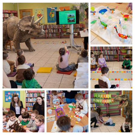W ramach akcji „Zima w mieście” odbyła się lekcja biblioteczna oraz zabawa karnawałowa dla dzieci z grup „Biedronki” i „Stokrotki” z Przedszkola nr 46 w Lublinie, a także dla podopiecznych Centrum Aktywności Środowiskowej w Lublinie. Spotkanie rozpoczęliśmy od zapoznania się z książką „Pętelkowy bal choinkowy”. Zorganizowano również lekcję biblioteczną i zabawy pod hasłem „Zimowa Dinokraina” dla dzieci z grupy „Żuczki” z Przedszkola z Oddziałami Integracyjnymi nr 36 „Tęczowa Łąka” w Lublinie. W trakcie zajęć korzystaliśmy z książki „Franklin na wycieczce” oraz innych książek o dinozaurach dostępnych w naszej bibliotece.