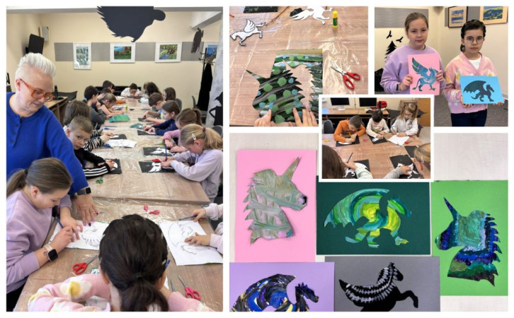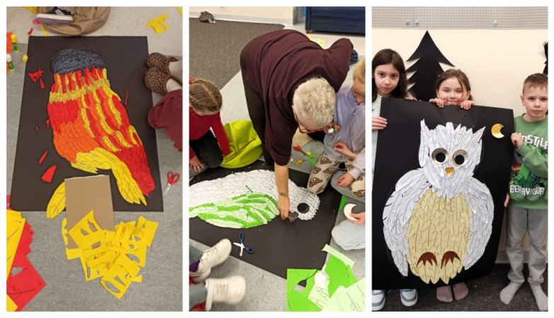 Ostatniego dnia naszych ferii uczestnicy obejrzeli prezentację "Fantastyczne stworzenia w literaturze dla dzieci i młodzieży". Dzieci kontynuowały pracę grupową nad obrazami-wyklejankami przedstawiającymi sowy. Efekt końcowy zachwycił wszystkich! Uczestnicy rozwiązywali też zagadki i quizy sprawdzające wiedzę o Harrym Potterze. Na zakończenie naszej fantastycznej przygody powstały zakładki w formie kolorowych, magicznych węży.