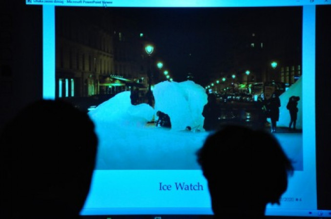 Wykład w Filii nr 2 dotyczył sztuki współczesnej, w której odbicie znalazły nurty i zagrożenia współczesnego świata dotyczące środowiska naturalnego. Twórczość artystyczna, której obszarem działania jest przestrzeń ziemi łączy naturę ze sztuką czerpiąc z ulotnych substancji zjawisk atmosferycznych, takich jak: deszcz, śnieg czy topniejące lodowce. Tworzy dzieła, dla których płótnem jest np. piasek, fale.