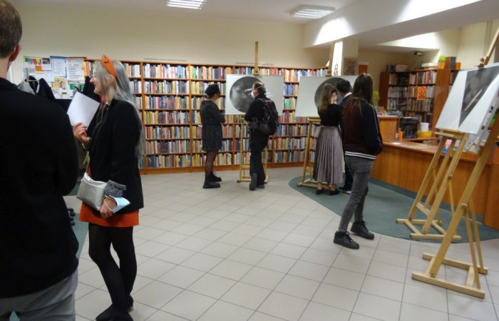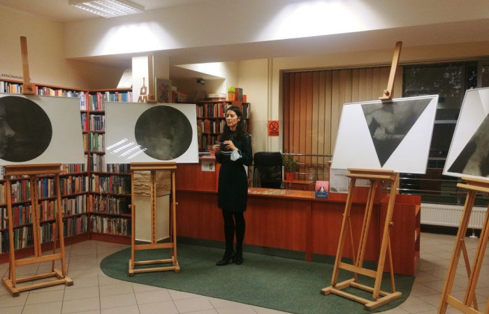 Wernisaż wystawy prac Marii Jerzyk „Dualizm znaku graficznego” zgromadził spore grono czytelników Filii 34 i miłośników grafiki. Cykl grafik podzielony przez artystkę na trzy zestawy po trzy prace zatytułowane Równowaga – Jedność - Dopełnienie, wykonane zostały w interesującej technice akwatinta UV. W każdym zestawie obecne dwa pierwiastki kobiecy „jin” i męski „jang” w połączeniu stanowiły spójność dzięki zamysłowi artystki. Wystawę grafik uzupełniają fotografie pokazujące proces tworzenia cyklu, który był pracą dyplomową Marii Jerzyk. Na wernisażu obecna była również promotor pracy pani dr hab. szt. Anna Perłowska-Weiser. Liczne pytania kierowane do artystki i rozmowy gości nadały spotkaniu ciepły klimat wieczoru.