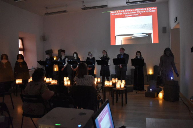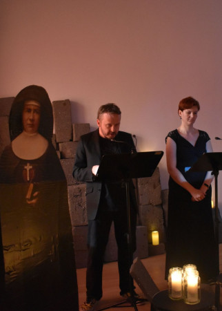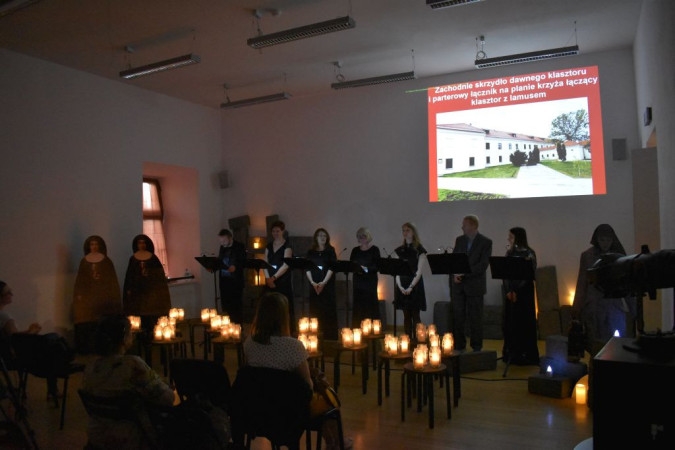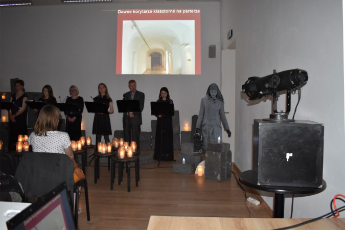 Nastrój grozy i tajemnicy wzmacniała scenografia - zapalone świece, dekoracje w postaci starych murów i makiety z wizerunkami sióstr zakonnych. Nie zabrakło także odgłosów dzwonów klasztornych. Prezentacja multimedialna archiwalnych zdjęć budynku również pomogła przenieść się w czasie.