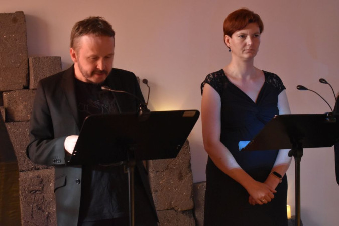 Dwoje uczestników czytania performatywnego w trakcie występu