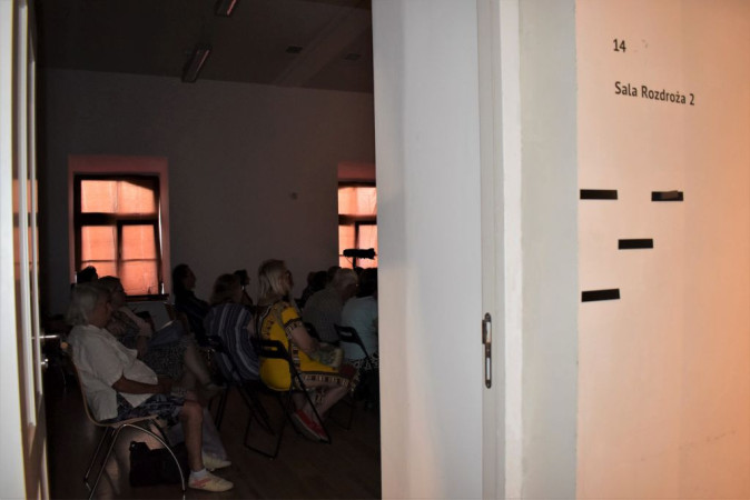 Sala Rozdroży w Centrum Kultury - widok na publiczność i uczestników czytania performatywnego