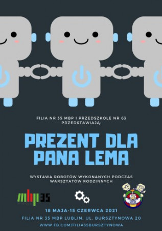 Filia nr 35 MBP wraz z Przedszkolem nr 63 zapraszają do obejrzenia wystawy twórczości przedszkolaków i ich rodziców inspirowanej twórczością Stanisława Lema. Prace zostały wykonane pod kierunkiem Ewy Cichalewskiej, Jolanty Czerwonki, Joanny Zielonki, Ewy Wójtowicz, Beaty Kostrzewskiej, Małgorzaty Kulpińskiej, Katarzyny Blat oraz Marzeny Więckowskiej-Zawady.