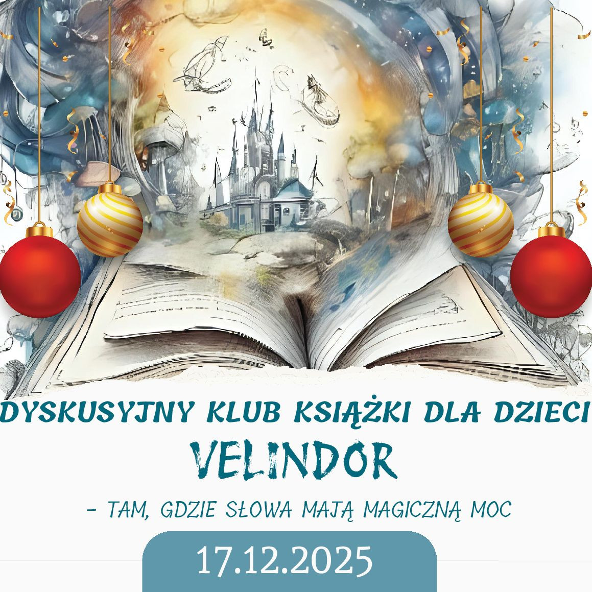 Filia nr 22 MBP zaprasza na spotkanie Dyskusyjnego Klubu Książki dla Dzieci - Velindor - tam gdzie słowa mają magiczną moc. Obowiązują świąteczne przebrania. Bohaterem spotkania będą książki o tematyce świątecznej. KLub dla dzieci w wieku 7-10 lat.