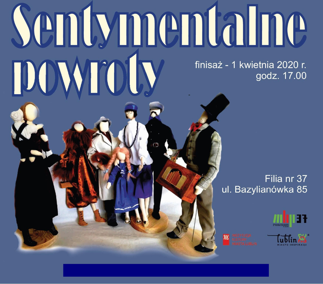 Sentymentalne powroty to tytuł wystawy lalek wykonanych z tkanin. Inspirowane one są historią, literaturą i folklorem. Uszyte zostały z dużą dbałością o szczegóły, z uwzględnieniem mody i stylu życia w dwudziestoleciu międzywojennym.