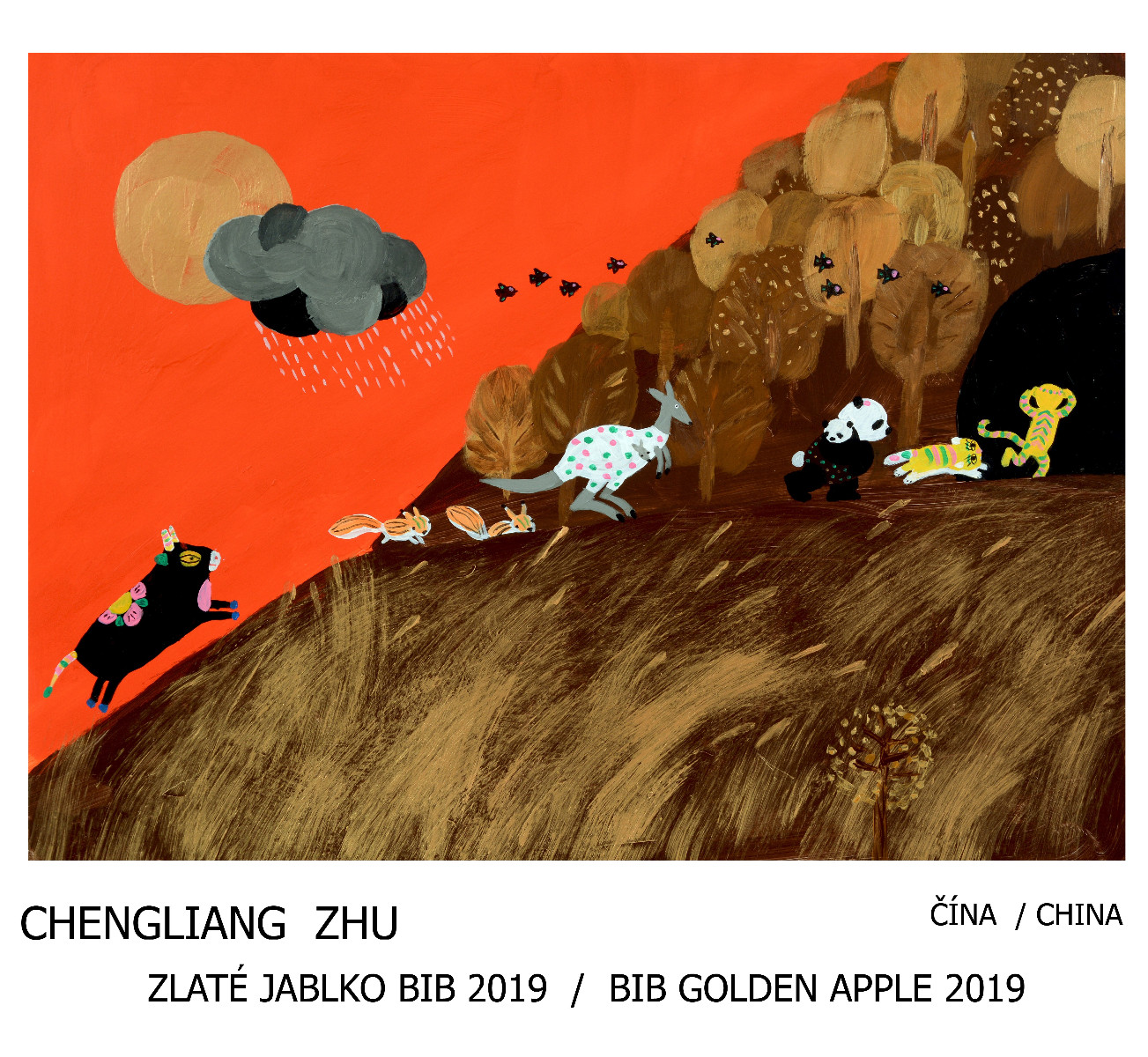 Pięć Złotych Jabłek powędrowało na kilka kontynentów. Chengliang Zhu z Chin stworzył ilustracje, które pomagają dzieciom zrozumieć świat i przyrodę dzięki obrazowości oraz zaktualizowanej współczesnej, jak i klasycznej tradycji chińskiej twórczości ilustratorskiej. Wykorzystuje tradycyjne kolory jakimi są czerwony, czarny, złoty, biały i łączy hieroglify z ilustracjami.