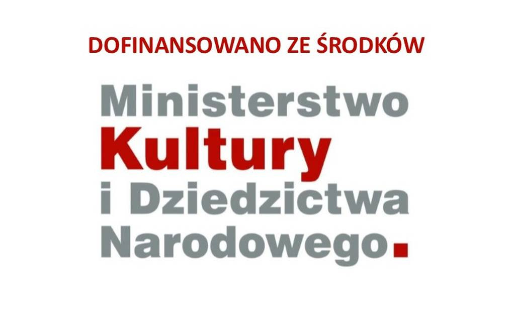"Dofinansowano ze środków Ministra Kultury i Dziedzictwa Narodowego pochodzących z Funduszu Promocji Kultury, uzyskanych z dopłat ustanowionych w grach objętych monopolem państwa, zgodnie z art. 80 ust. 1 ustawy z dnia 19 listopada 2009 r. o grach hazardowych"