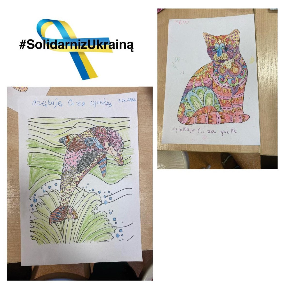 fot. kolorowanki dzieci ukraińskich ze słowami podziękowania dla zespołu Filii nr 1