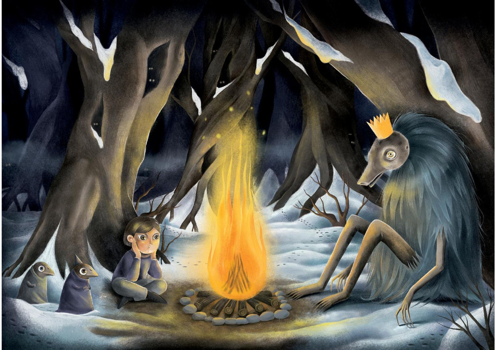 Dalej, w noc... mówi Katarzyna Wójcik, zapraszając do świata, który możemy oglądać na Jej magicznych ilustracjach. Czyż noc i magia nie są nierozerwalnie ze sobą powiązane? To przecież nocą wyśniony świat ożywa, a magia zaczyna działać najmocniej. Kwiat paproci możliwy jest do odnalezienia tylko w jedną noc w roku i wraz z brzaskiem dnia znika. Nocą także, przy blasku księżyca Wars po raz pierwszy spotyka niezwykłą Sawę. Księżniczka zaklęta w złotą kaczkę tylko wraz z nadejściem nocy przybiera swą dawną postać. Noc, to czas działania sił magicznych, a zarazem tajemniczych, od dawien dawna pociągających człowieka. Taki jest świat stworzony na ilustracjach Katarzyny Wójcik - magiczny, tajemniczy, pociągający, skryty w mroku nocy, rozświetlonym srebrnym światłem księżyca. Autorka zaprasza widzów do czarodziejskich miejsc, gdzie postaci ze snów, legend i baśni na nowo ożywają, by spojrzeć na nas swym nieprzeniknionym wzrokiem, zaprosić do wspólnej wędrówki, by odnaleźć świat bez nieporozumień, konfliktów, wojen, pełen spokoju, ciepła i harmonii.