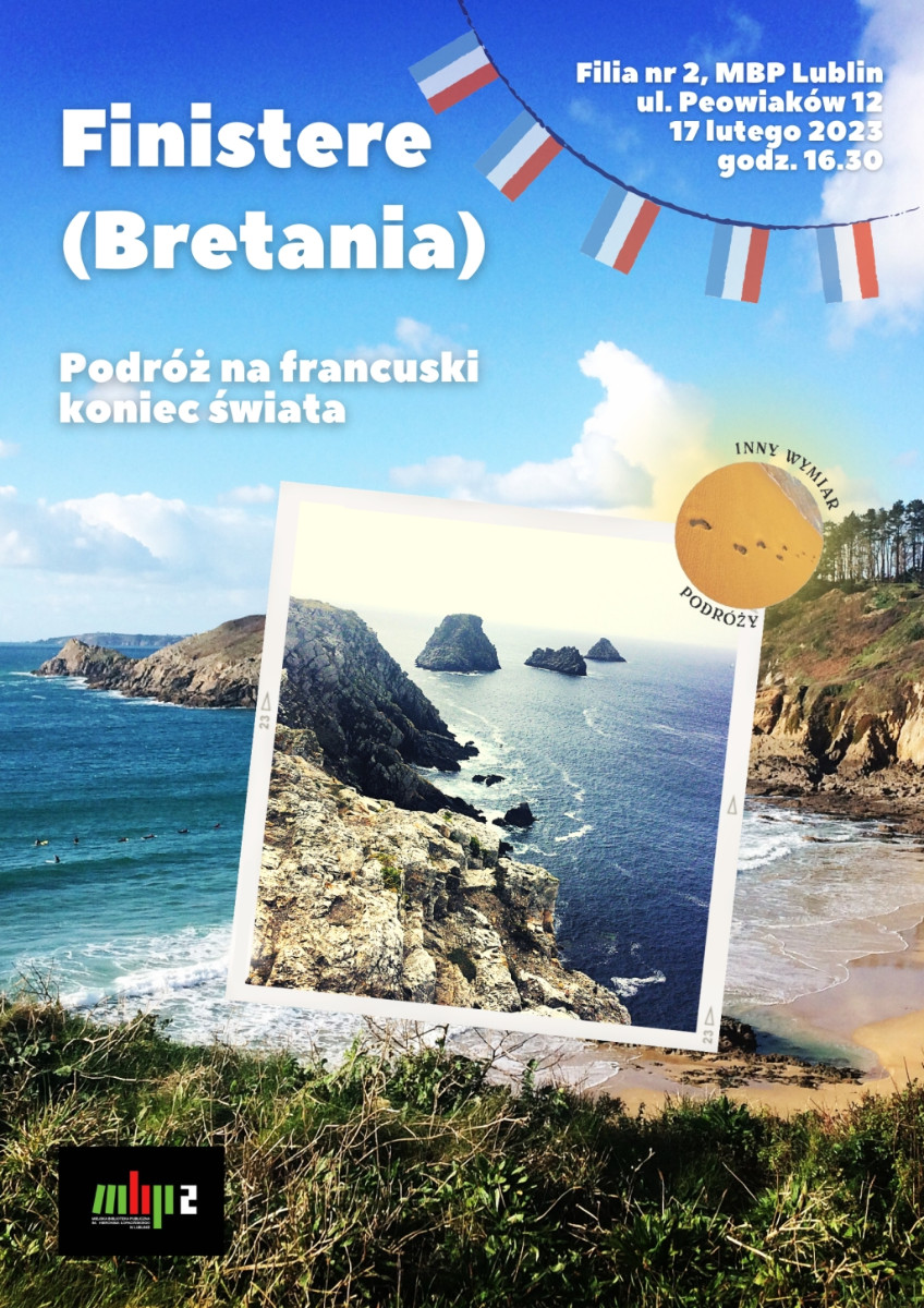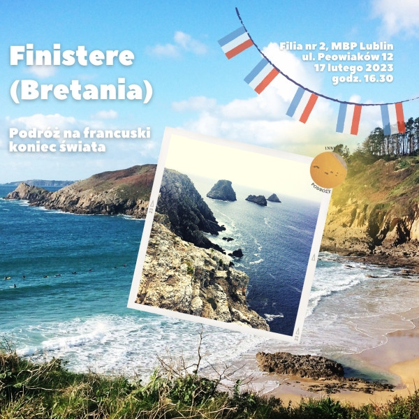 Finistere (Bretania) - podróż na francuski koniec świata. Spotkanie z cyklu "Inny wymiar podróży" w Filii nr 2 MBP Lublin przy ul. Peowiaków 12 odbędzie się 17 lutego 2023 r. o godz. 16.30. O Bretanii opowie Katarzyna Lipska.
