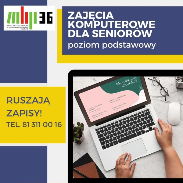 Filia nr 36 MBP Lublin przy ul. Zygmunta Augusta 15 na Felinie zaprasza do zapisywania się na zajęcia komputerowe dla seniorów na poziomie podstawowym.