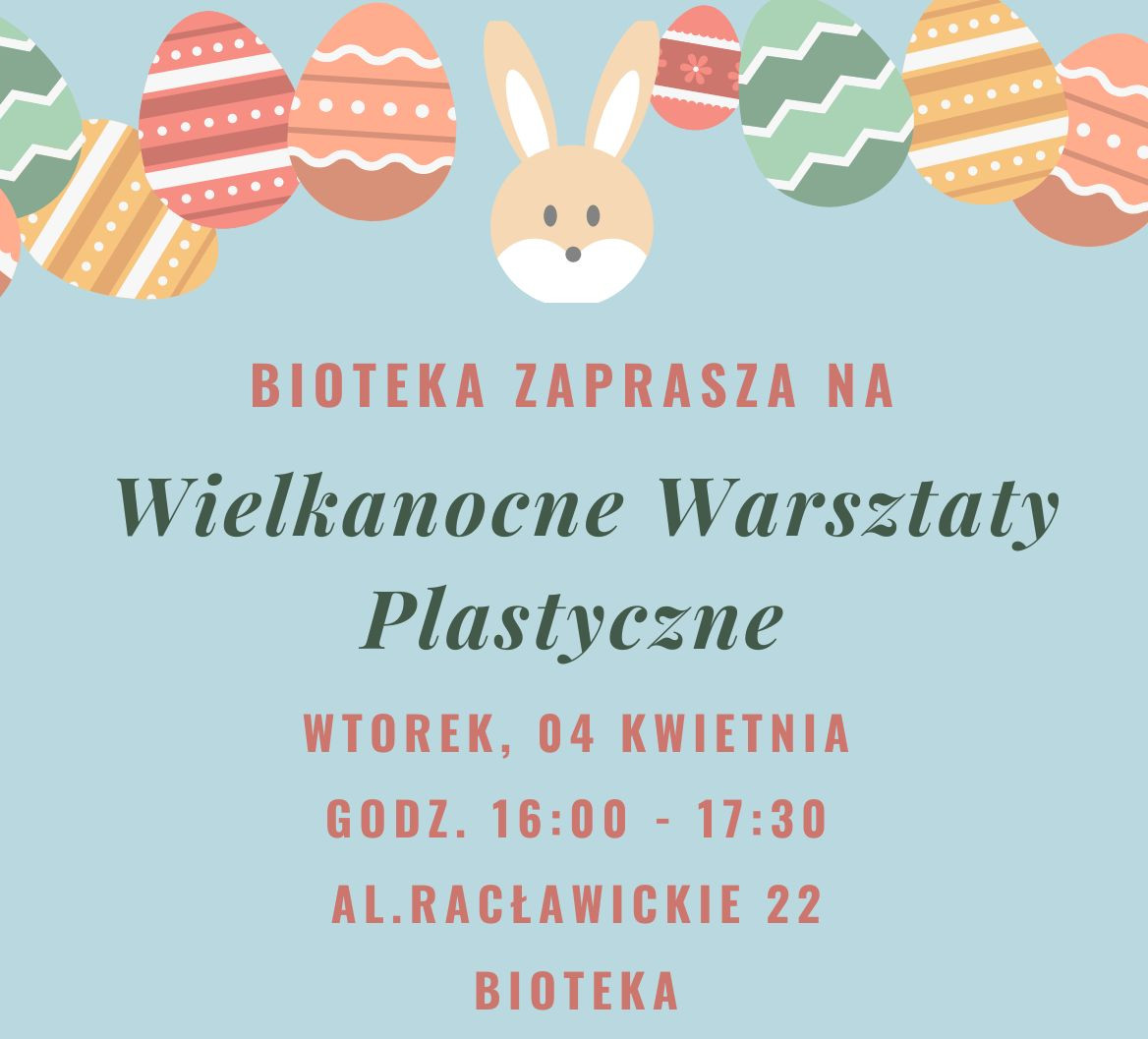 Bioteka zaprasza dzieci w wieku 7 - 13 lat na warsztaty plastyczne, w trakcie których powstaną prace plastyczne o tematyce Wielkanocnej.