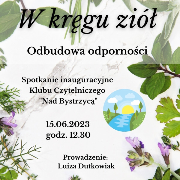 Filia nr 28 MBP Lublin przy ul. Nadbystrzyckiej 85 zaprasza na spotkanie inauguracyjne Klubu Czytelniczego "Nad Bystrzycą" pod hasłem: "W kręgu ziół - odbudowa odporności".