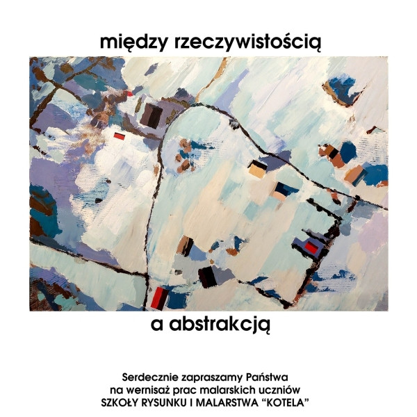 Szkoła Rysunku i Malarstwa KOTELA została założona przez artystkę Agnieszkę Kotelę. Jej uczniowie kształcą się na zajęciach z malarstwa, rysunku artystycznego i architektonicznego. Wystawa "między rzeczywistością a abstrakcją" prezentuje efekty ich twórczej pracy.