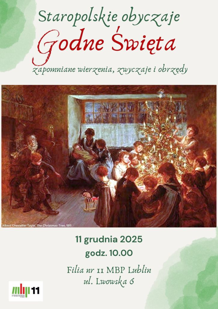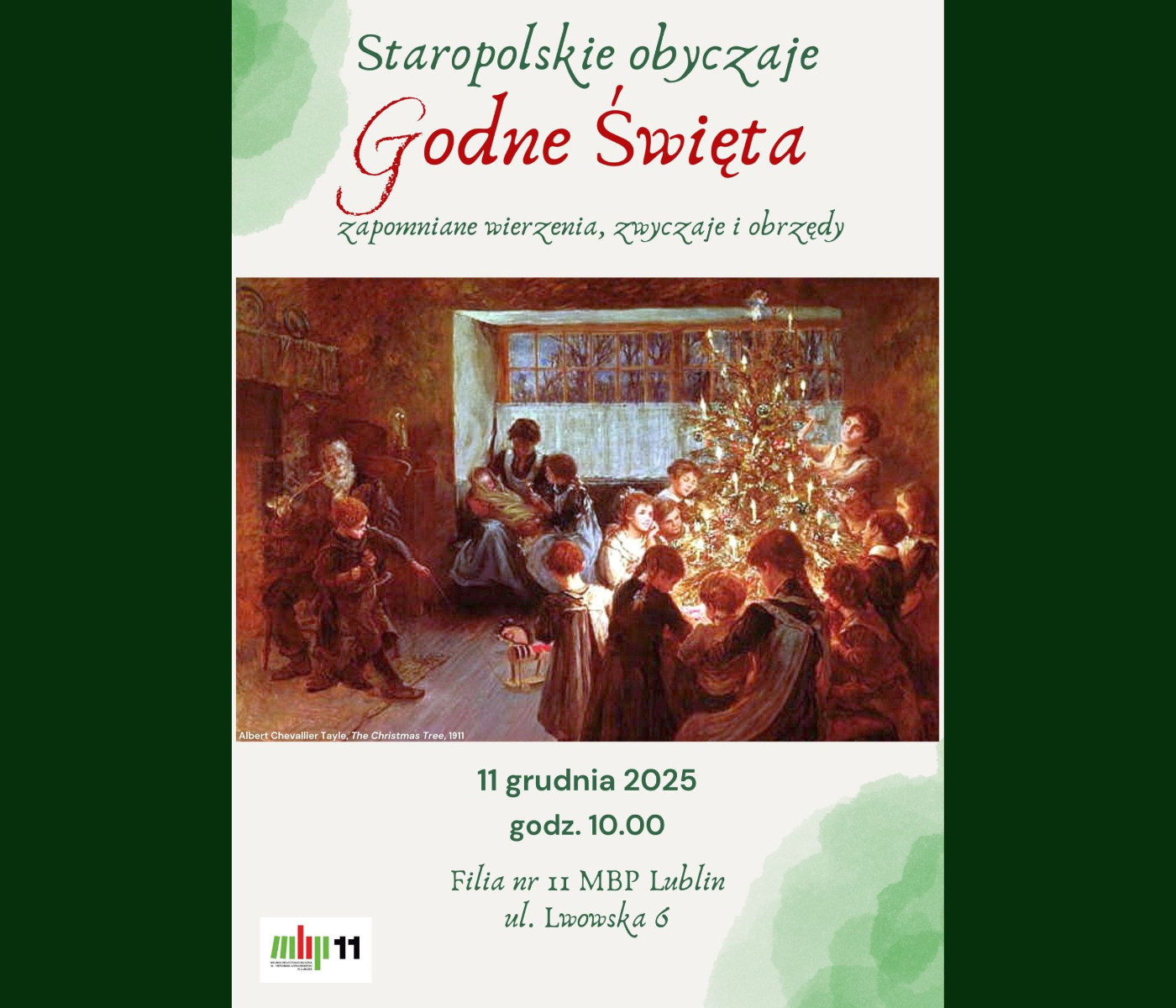 Filia nr 11 Miejskiej Biblioteki Publicznej w Lublinie (ul. Lwowska 6) zaprasza na prelekcję z cyklu "Staropolskie obyczaje" - tym razem pod hasłem "Godne Święta".