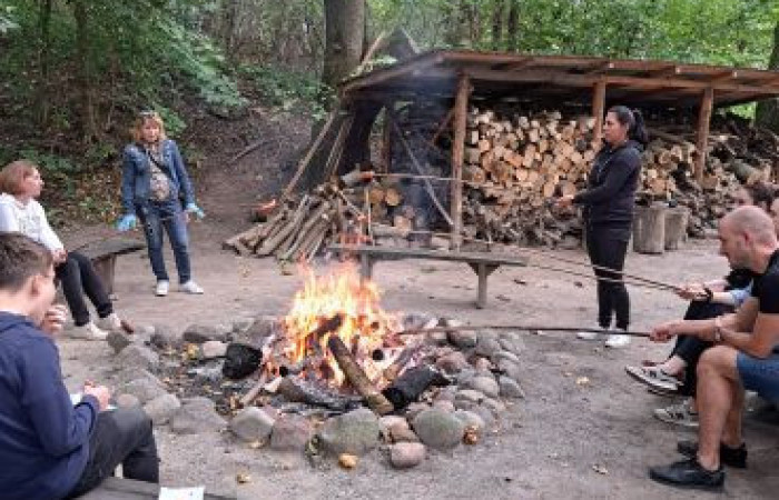 Skansen. Sobotnie popołudnie. Na kolejne nasze spotkanie, tym razem pod hasłem Akcja-Integracja wybraliśmy właśnie Muzeum Wsi Lubelskiej, gdzie w wąwozie, za dworkiem z Żyrzyna zorganizowaliśmy ognisko z pieczeniem kiełbasek. I tym razem nie zawiódł zaprzyjaźniony szaman z Roztocza. Mimo zapowiadanej wcześniej niekorzystnej aury, rozgonił chmury i deszcze. Dodatkową atrakcją dla uczestników spotkania była również możliwość spaceru po Skansenie.
