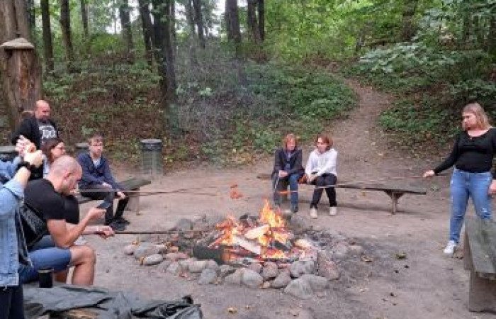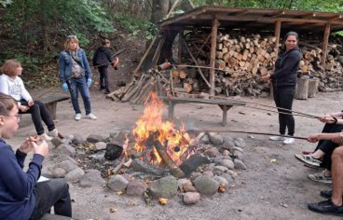 Typowe ogniskowe menu zostało zdeklasowane przez własnoręcznie robione babeczki Marii w trzech różnych smakach. Zniknęły błyskawicznie. Była muzyka, tańce i śpiew.