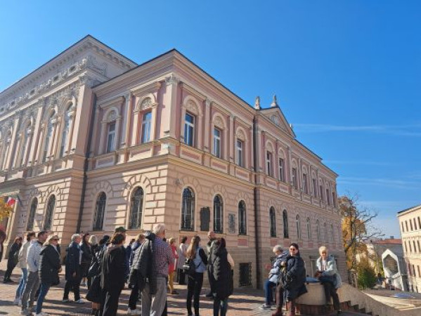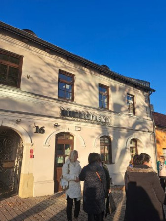 Odwiedziliśmy również Powiatową i Miejską Bibliotekę Publiczną w Proszowicach, mieście powiatowym oddalonym o ok. 35 km od Krakowa. Pani dyrektor Agnieszka Rojewska oprowadziła nas po pięknie wyremontowanych wnętrzach tej ponad stuletniej biblioteki, mieszczącej się w jednym z najstarszych, istniejących w mieście murowanych budynków. Dziękujemy za bardzo ciepłe przyjęcie.