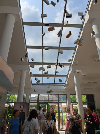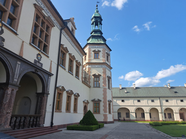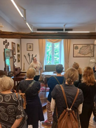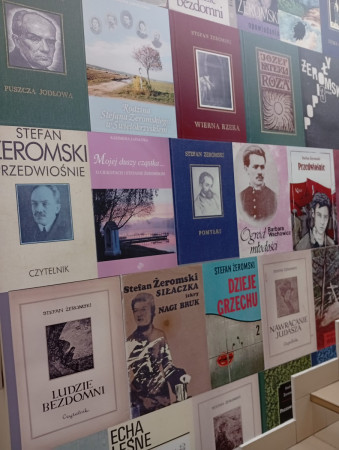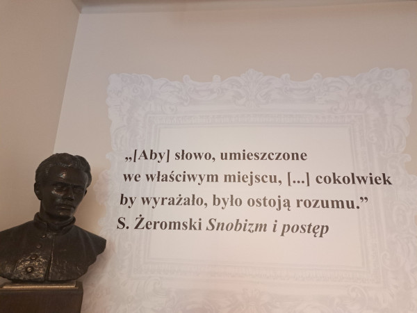 Dwór zbudowany w 1753 roku, uległ całkowitemu zniszczeniu. Odtworzono go w 2010 roku dzięki zaangażowaniu wielu osób m.in. Kazimiery Zapałowej – kustosz honorowej i wielkiej pasjonatce twórczości Stefana Żeromskiego. Obecnie malowniczo położony nad jeziorkiem kompleks pełni funkcję edukacyjno-kulturalną. Odbywają się tu festiwale, koncerty, spektakle teatralne, spotkania literackie i wiele innych wydarzeń. Z Ciekot ruszyliśmy do Kielc, aby w tamtejszym Muzeum Stefana Żeromskiego poznać bliżej dalsze losy naszego bohatera. W zaaranżowanej sali lekcyjnej poznaliśmy materiały dokumentujące lata nauki w Męskim Gimnazjum Rządowym i twórczość pisarza. A potem relaks, spacery i zwiedzanie Kielc m.in. Wzgórza Zamkowego z Katedrą i dawnym pałacem Biskupów Krakowskich. Część grupy zdecydowała się odwiedzić rezerwat przyrody Kadzielnia. Atrakcją była trasa podziemna przechodząca przez Jaskinię Odkrywców, Prochownię i Szczelinę Kadzielniańską oraz zjazd tyrolką z widokiem na przepiękną panoramę Kielecczyzny. Wisienką na torcie okazała się kapryśna ostatnio pogoda, która na widok bibliotekarzy z Lublina zerknęła na nas przyjaźnie i postanowiła, że ten dzień będzie ciepły i słoneczny.