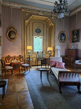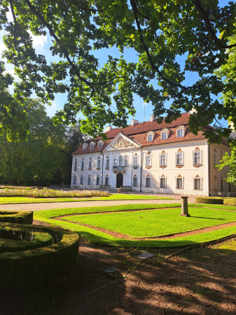 Opuszczając Lipce Reymontowskie skierowaliśmy się w stronę Nieborowa by zwiedzić jedną z najbardziej znanych rezydencji magnackich w Polsce, dawną siedzibę rodziny Radziwiłłów. Istniejący od XVI wieku, początkowo drewniany dwór, został zastąpiony budowlą gotycko-renesansową, a następnie barokową. W 1774 roku staje się własnością księcia Michała Hieronima Radziwiłła herbu Trąba. Dzięki niemu mogliśmy podziwiać we wnętrzach pałacu wspaniałą bibliotekę, która obecnie liczy 11540 woluminów. Są to przede wszystkim dzieła z zakresu historii, prawa, sztuk pięknych, filozofii, geografii i religioznawstwa. Bogato reprezentowana jest również literatura francuska i angielska z XVIII i XIX wieku oraz pamiętniki i opisy podróży. Zwiedziliśmy także wnętrza pałacowe oraz Manufakturę Majoliki (ceramika pokryta nieprzezroczystą polewą olowiowo-cynową o bogatej kolorystyce). Pałac w Nieborowie jest nie tylko filią Muzeum Narodowego w Warszawie, ale także miejscem międzynarodowych konferencji i spotkań dyplomatycznych. Ducha pałacu mogliśmy poczuć popijając mrożoną kawę w przyogrodowej kawiarence.